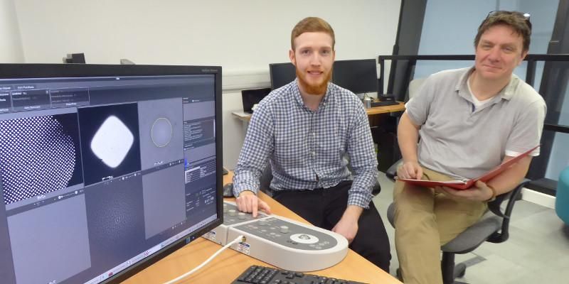 Dan Hurdiss is pictured with Professor Neil Ranson at the Cryo-electron microscopy lab on the University campus.