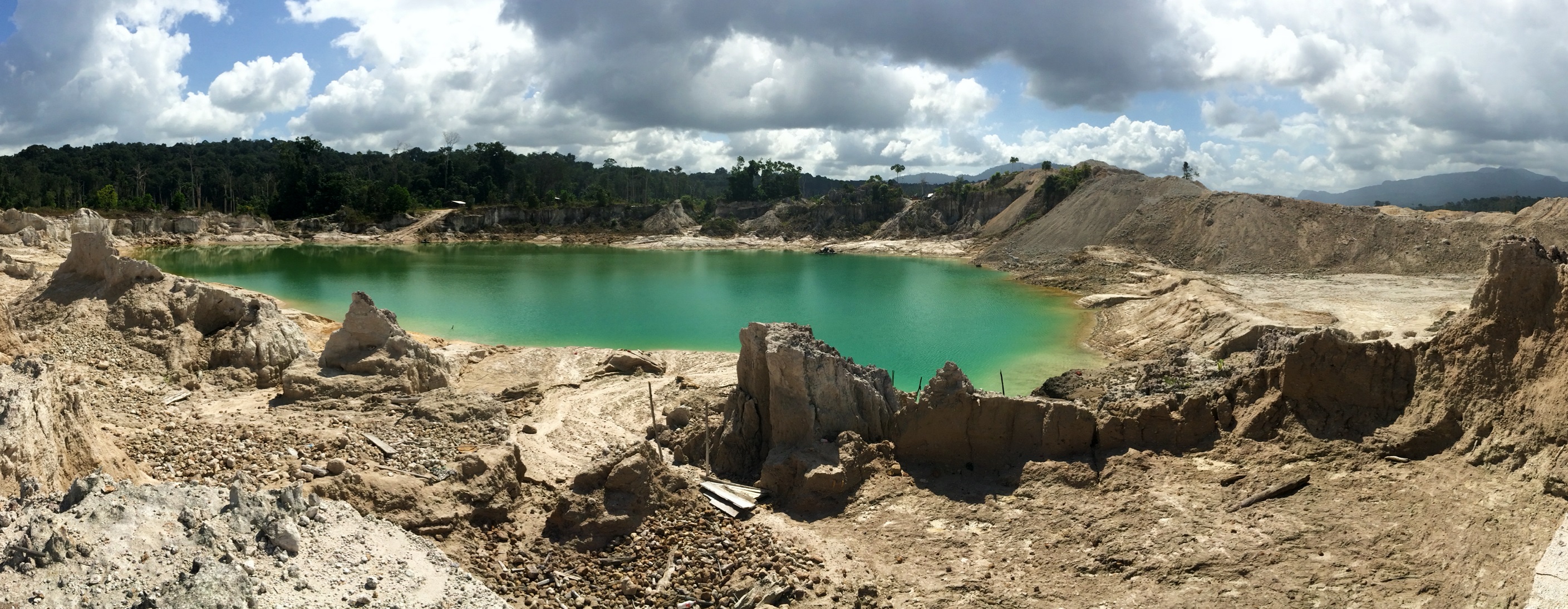 Tailing pond and mining pit landscape at mining site near Mahdia, Guyana. Credit: Dr Michelle Kalamandeen