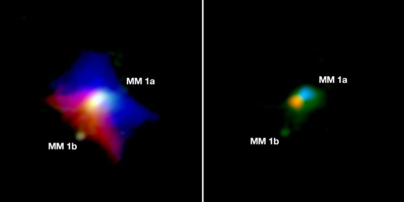 By measuring the amount of radiation emitted by the dust, and subtle shifts in the frequency of light emitted by the gas, the researchers were able to calculate the mass of MM 1a and MM 1b.